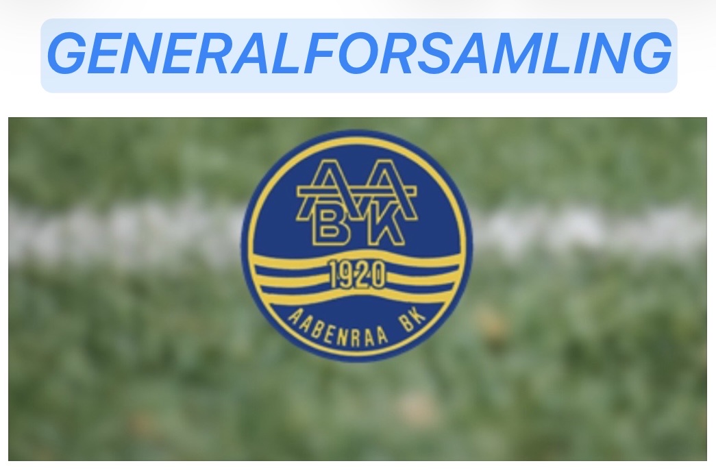 Boldklubbens Venner AaBK afholder generalforsamling Onsdag 15. april 2026 kl. 18.00 og efterfølgende afholder Aabenraa Boldklub kl. 19.00 generalforsamling.